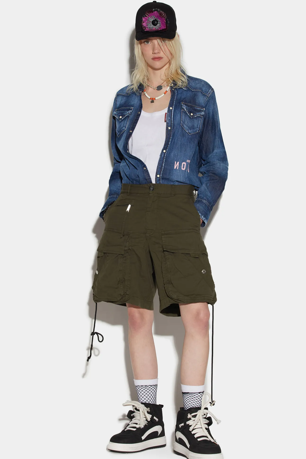 - Pantalones Cortos Estilo Militar En Algodon Elastico