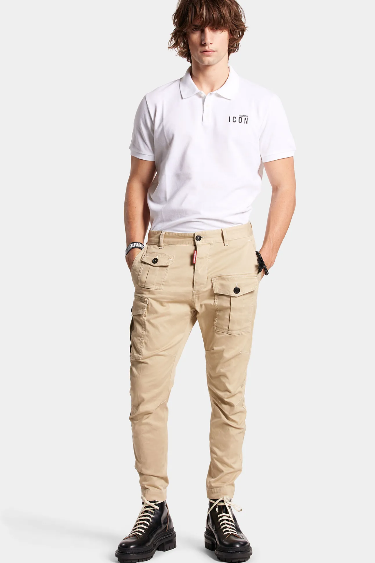 Informacion De ProductoTejido Principal: 97 % Algodon, 3 % Elastano. Forro De Los Bolsillos: 100 % Algodonget Ready To Turn Heads With These Chino Trousers From Dsquared2. The Standout Feature Of These Trousers Is The Misaligned Triple Pockets Of Varying Sizes On The Front, Which Add A Touch Of Quirkiness To The Otherwise Classic Silhouette. The Prominent Stitched Circle On The Back Is Another Unique Detail That Sets These Trousers Apart. These Trousers Are Very Low-Crotched And High-Waisted, So They’Re Perfect For Making A Fashion-Focused Statement. Pair Them With A Graphic T-Shirt And Sneakers For A Casual, Cool Vibe.
